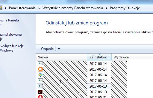 Usuńmy podejrzane oprogramowanie z listy “dodaj usuń programy”.